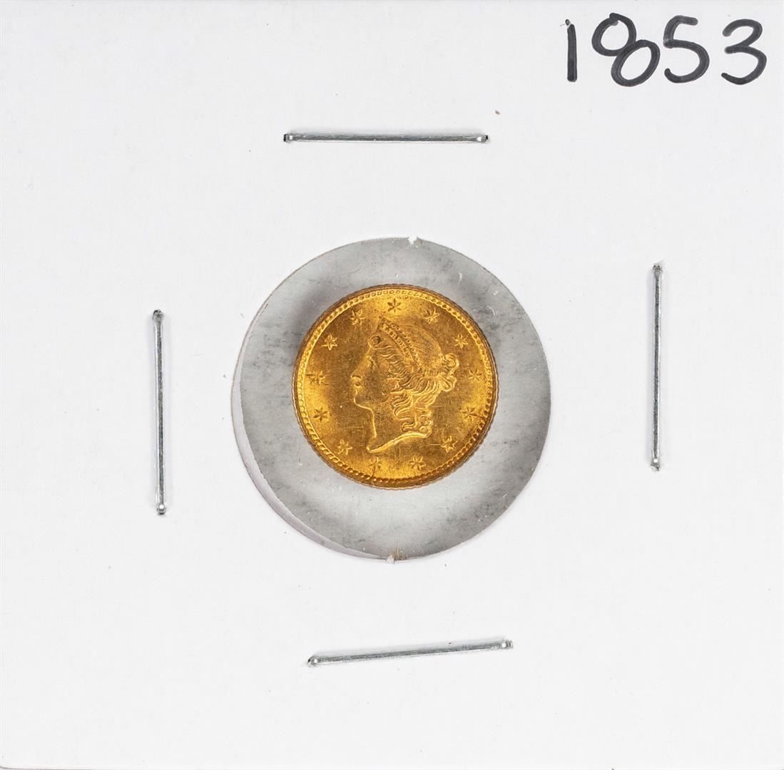 One 1853 Type 1 $1 Liberty Head Gold Dollar Coin.
