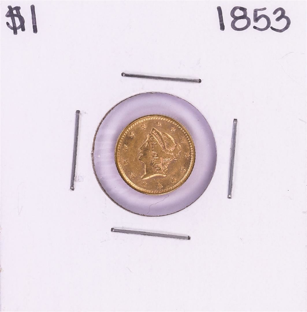 One 1853 Type 1 $1 Liberty Head Gold Dollar Coin.
