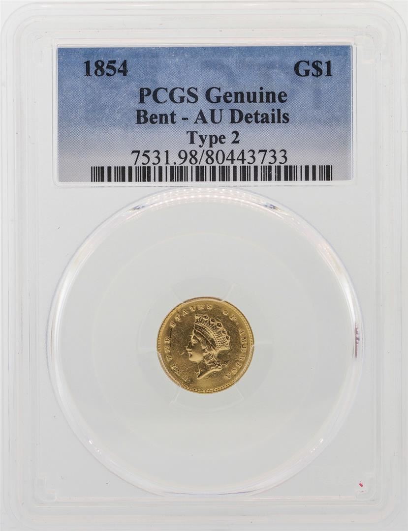 One 1854 $1 Indian Princess Head Gold Dollar Coin PCGS AU Details. PCGS Graded.