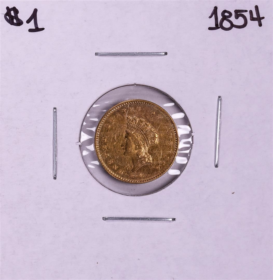 One 1854 $1 Indian Princess Head Gold Dollar Coin.