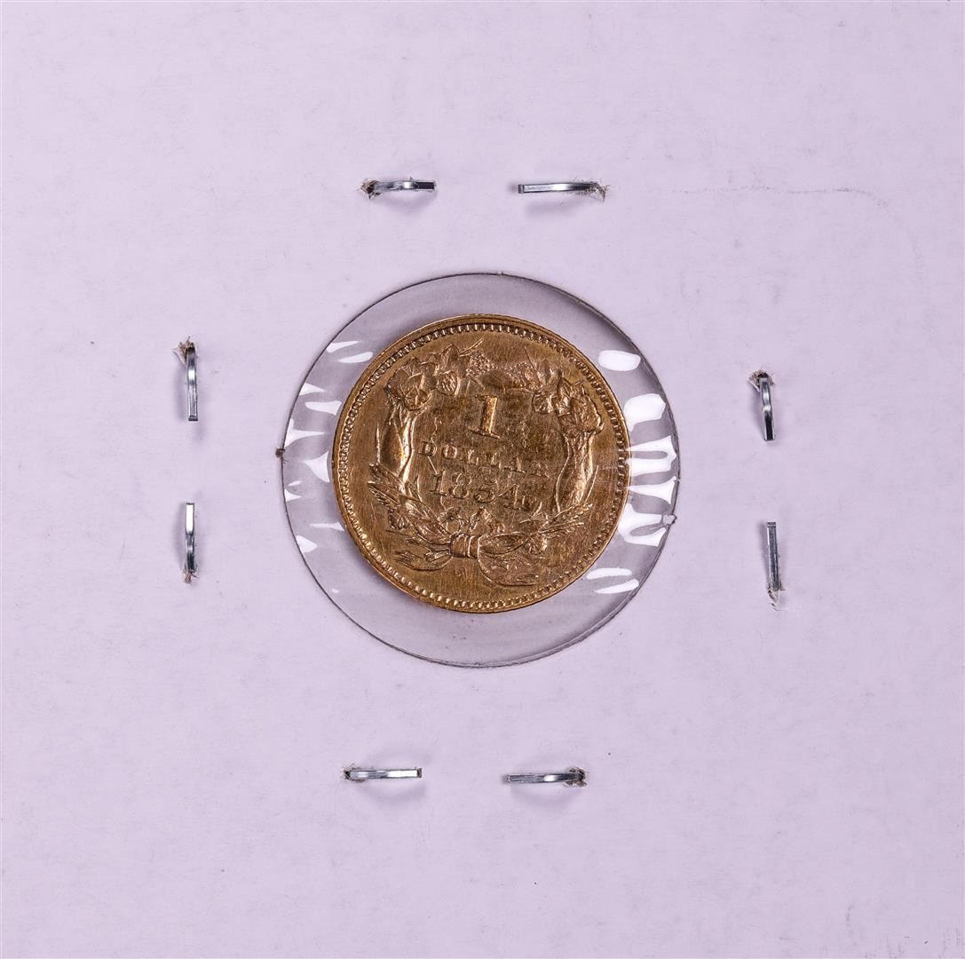 One 1854 $1 Indian Princess Head Gold Dollar Coin.