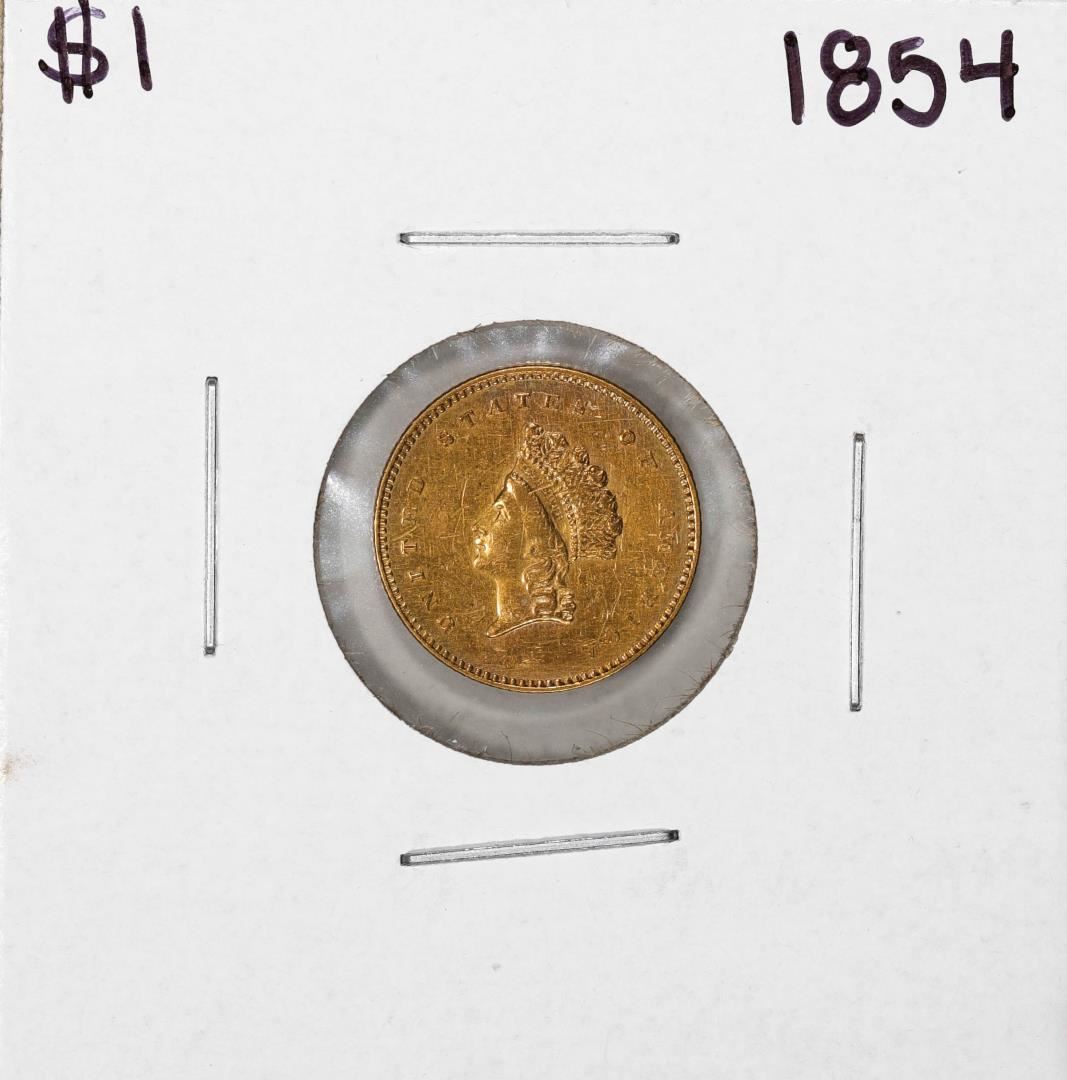 One 1854 $1 Indian Princess Head Gold Dollar Coin.