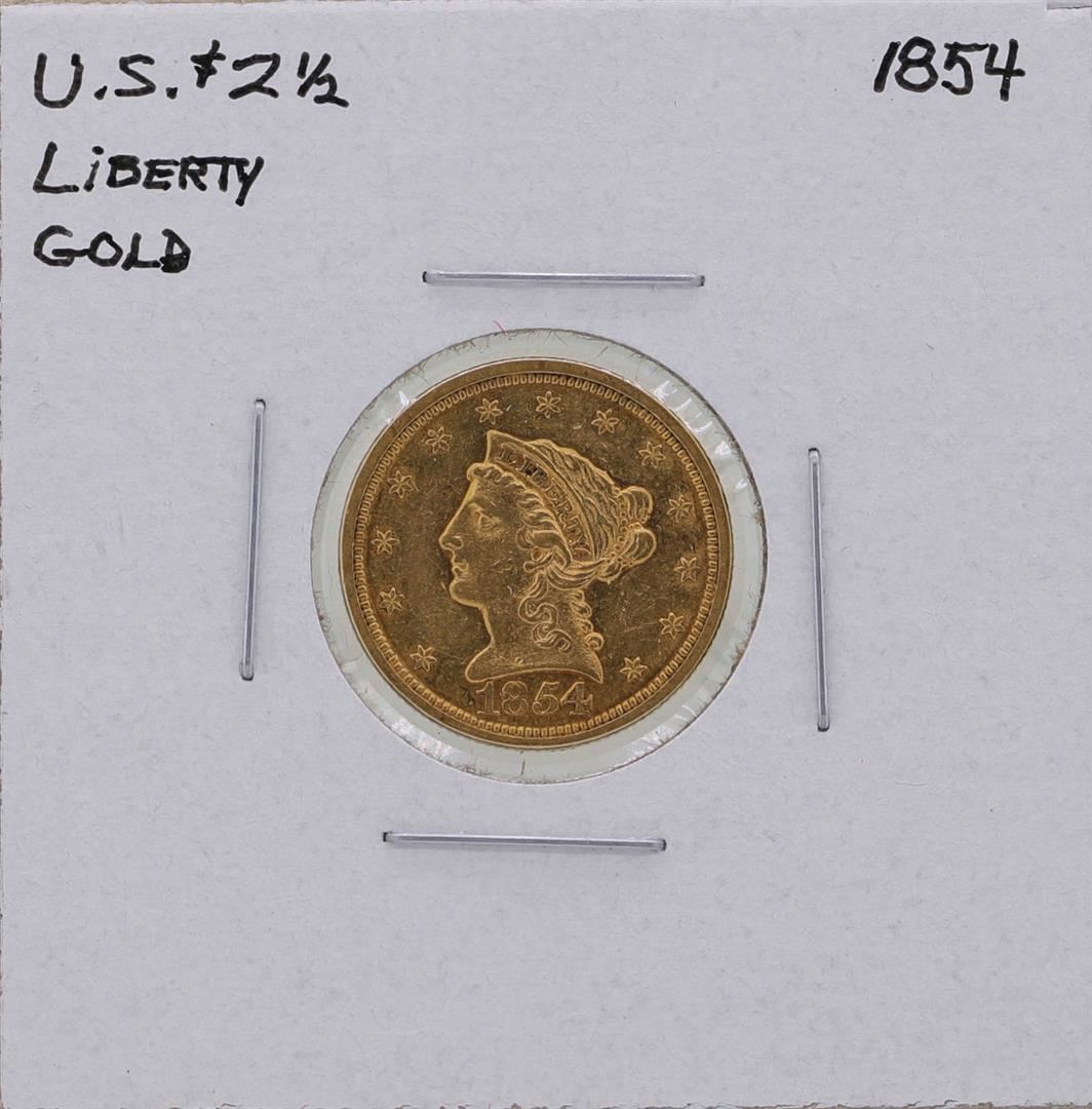 One 1854 $2 1/2 Liberty Head Quarter Eagle Gold Coin.
