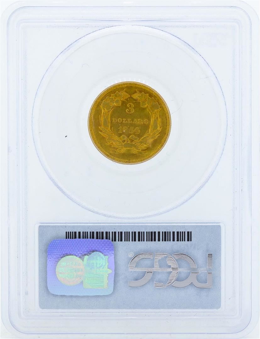 One 1854 $3 Indian Princess Head Gold Coin PCGS AU55. PCGS Graded.