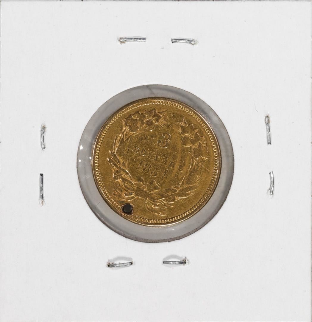 One 1854 $3 Indian Princess Head Gold Coin - with Hole.