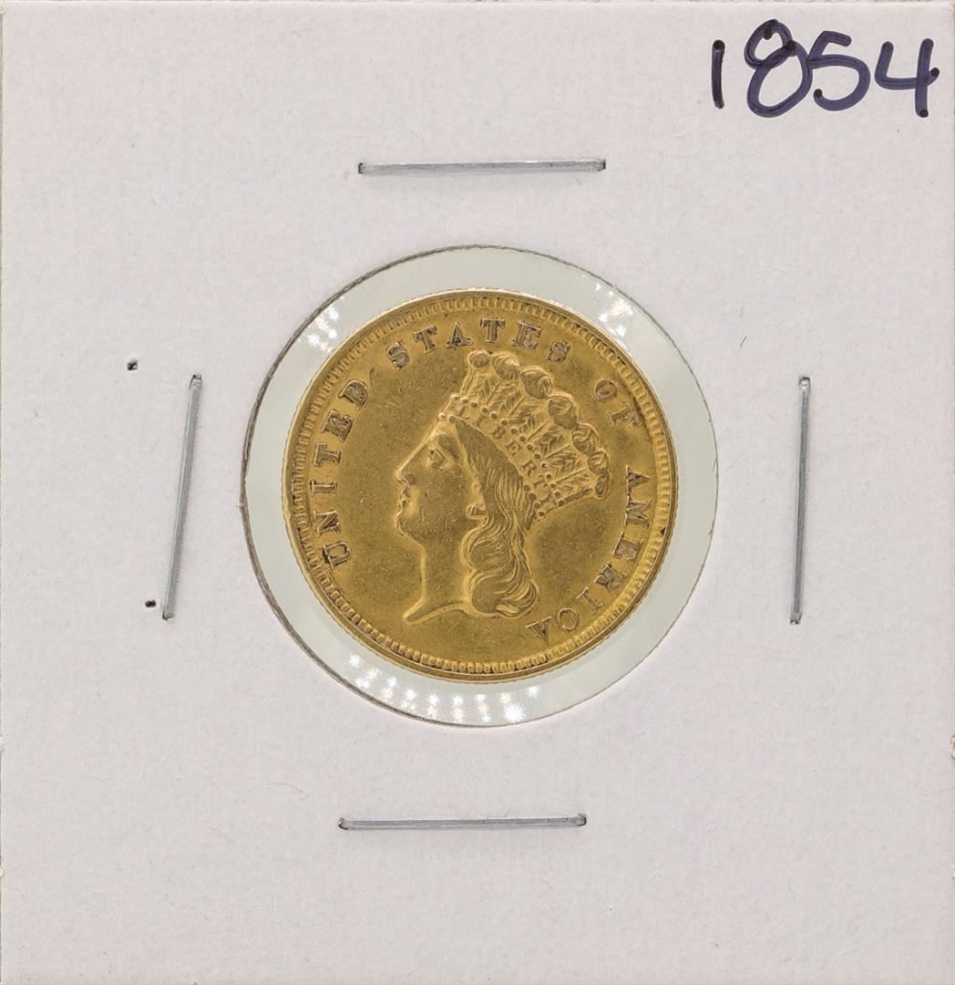 One 1854 $3 Indian Princess Head Gold Coin.