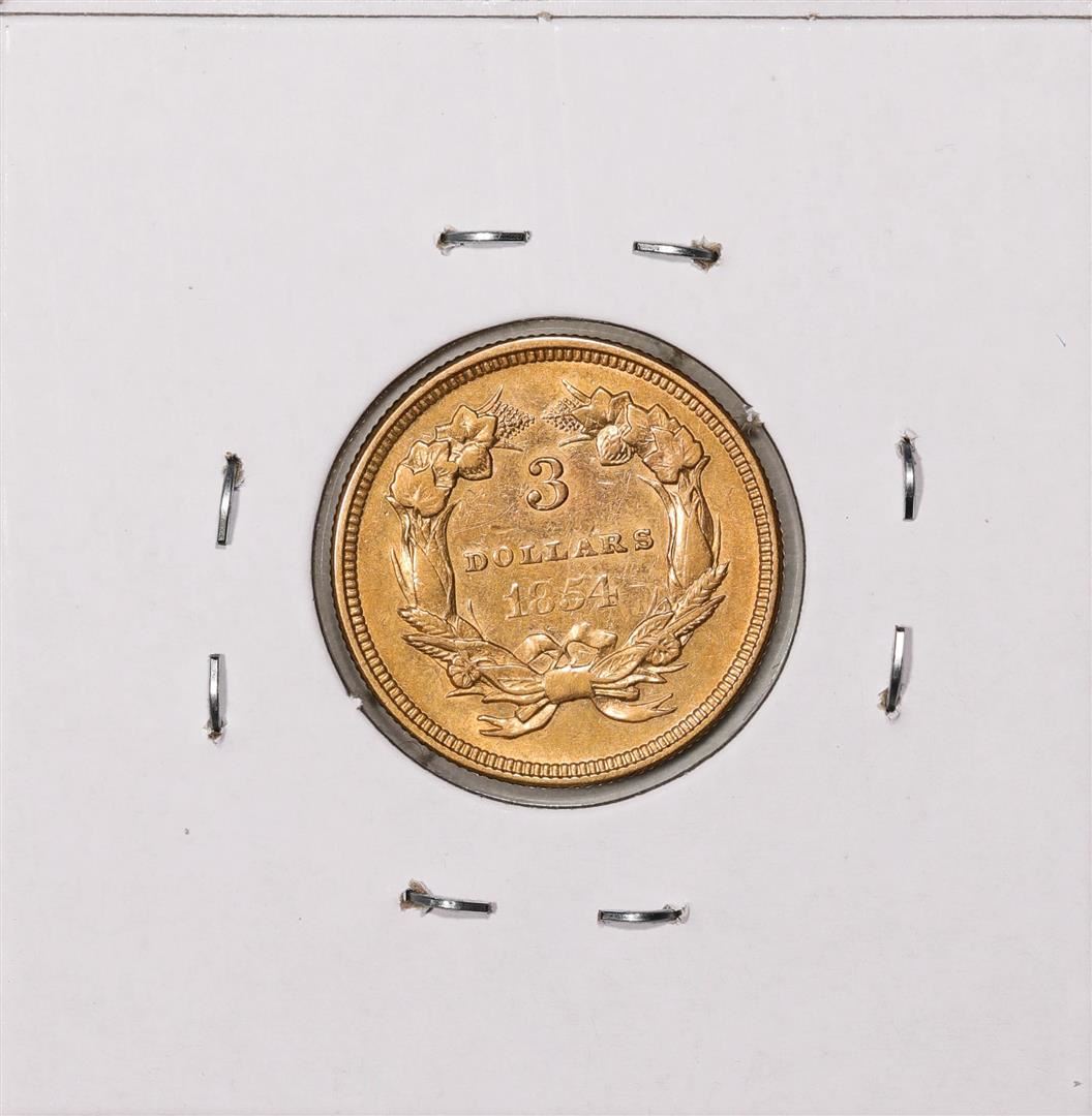 One 1854 $3 Indian Princess Head Gold Coin.