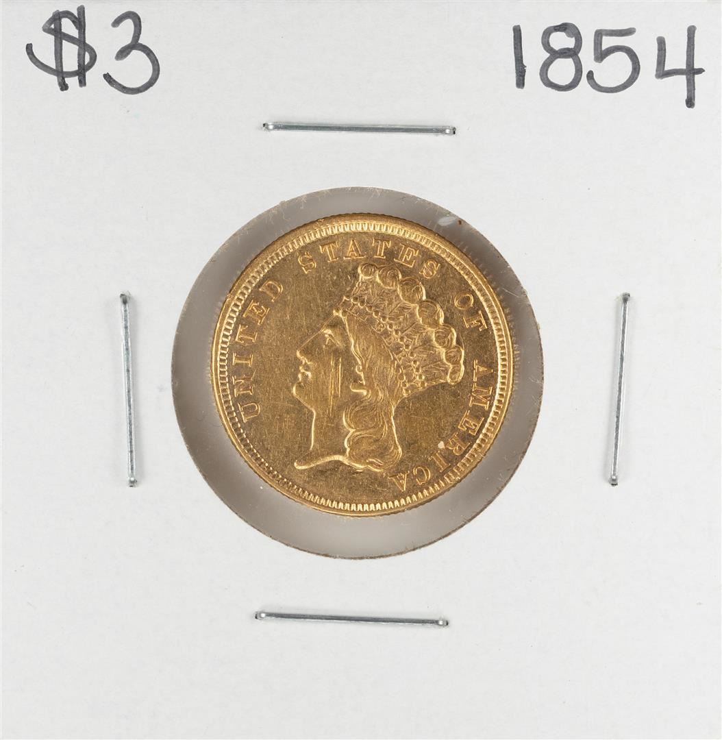 One 1854 $3 Indian Princess Head Gold Dollar Coin.
