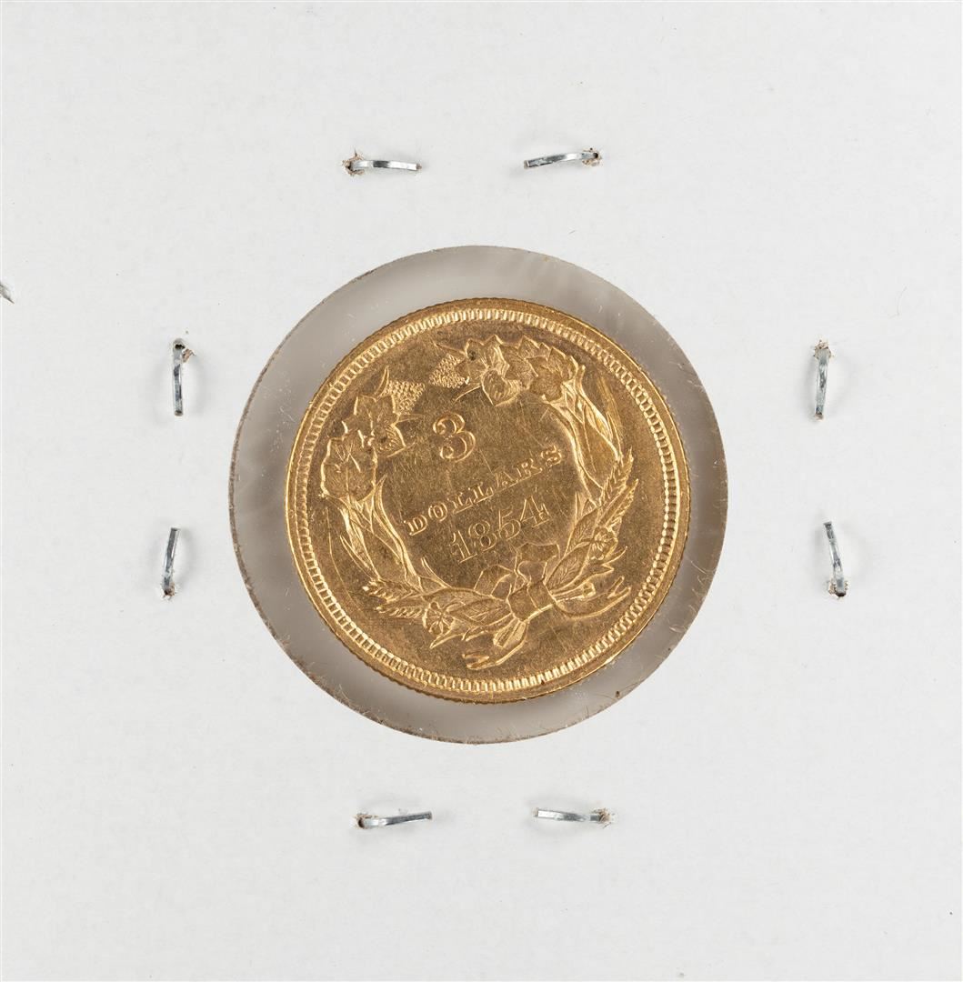 One 1854 $3 Indian Princess Head Gold Dollar Coin.