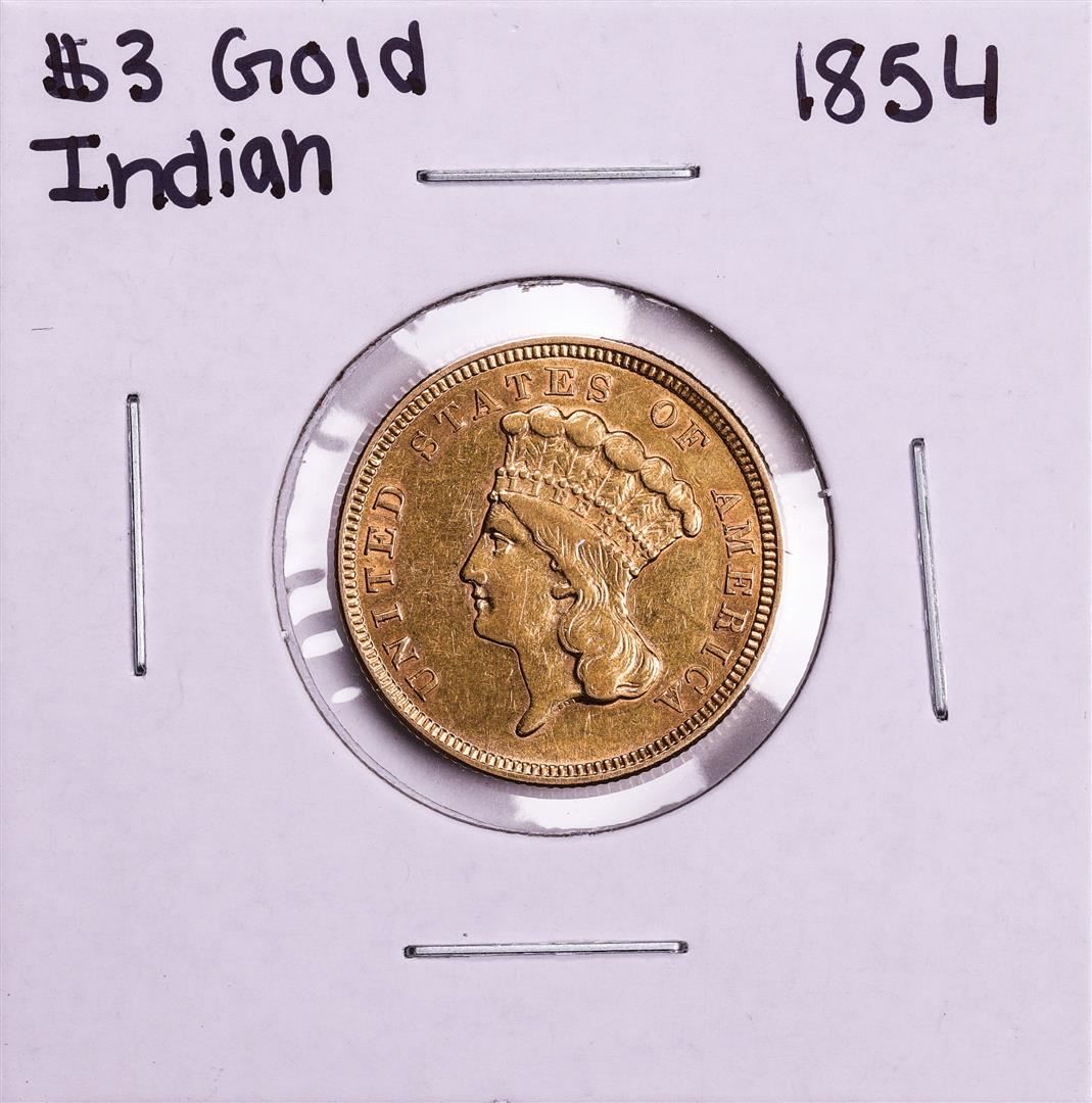 One 1854 $3 Indian Princess Head Gold Dollar Coin.