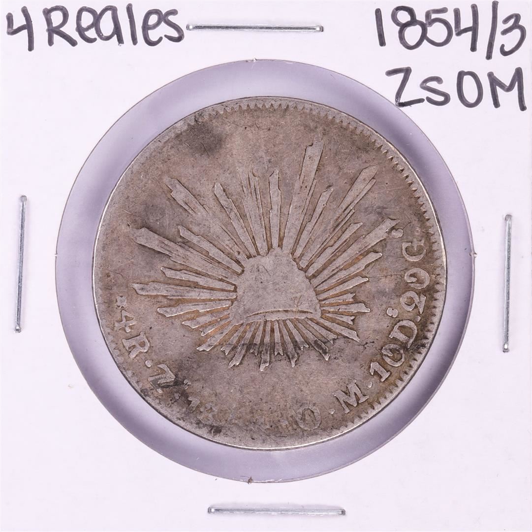 One 1854/3 ZsOM Mexico 4 Reales Silver Coin.