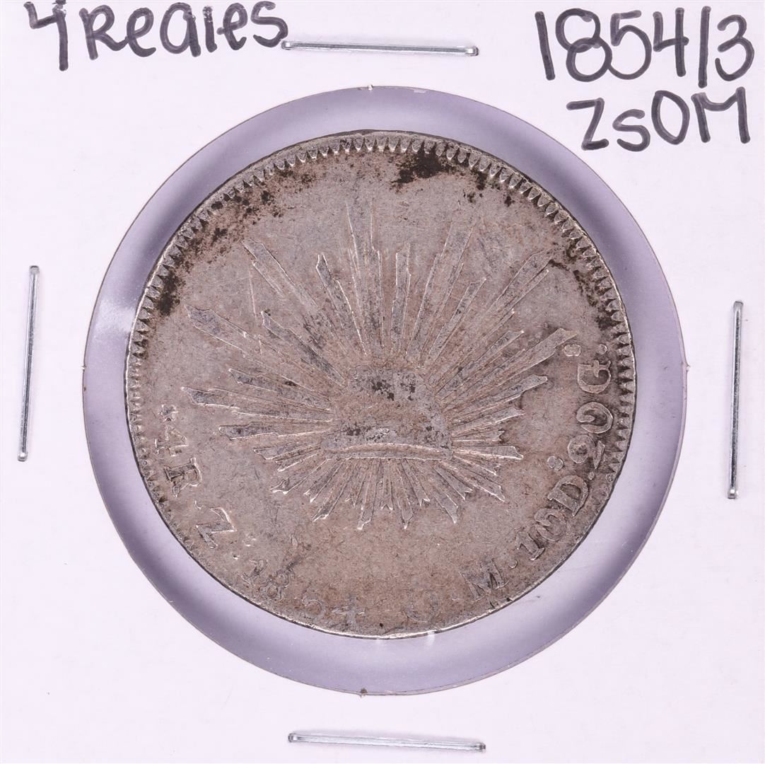One 1854/3 ZsOM Mexico 4 Reales Silver Coin.