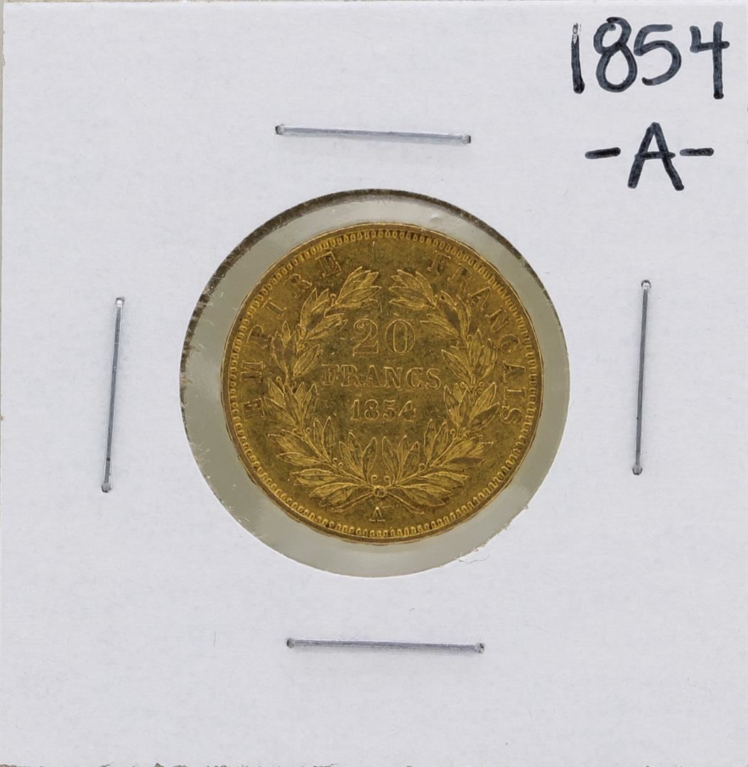 One 1854-A France 20 Francs Gold Coin.