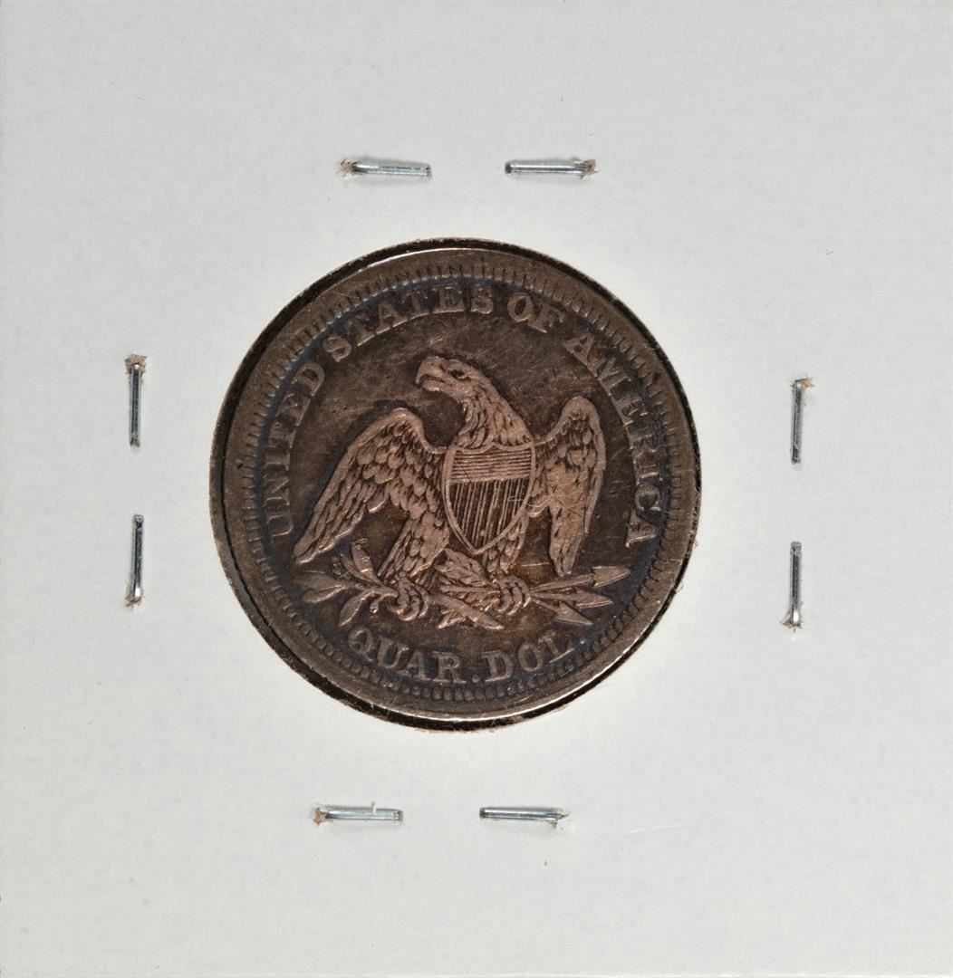 One 1854 Arrows Seated Liberty Quarter Coin.