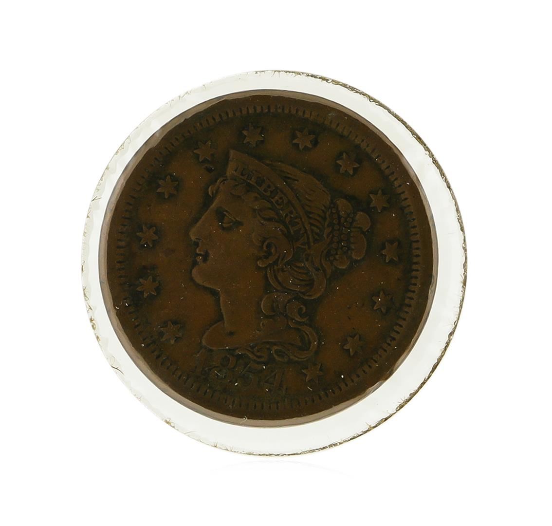 Bidders are advised that certain types of plastic may react with a coin's metal or transfer plasticizer to notes and may cause damage. Caution should be used to avoid storage in materials that are not inert.
