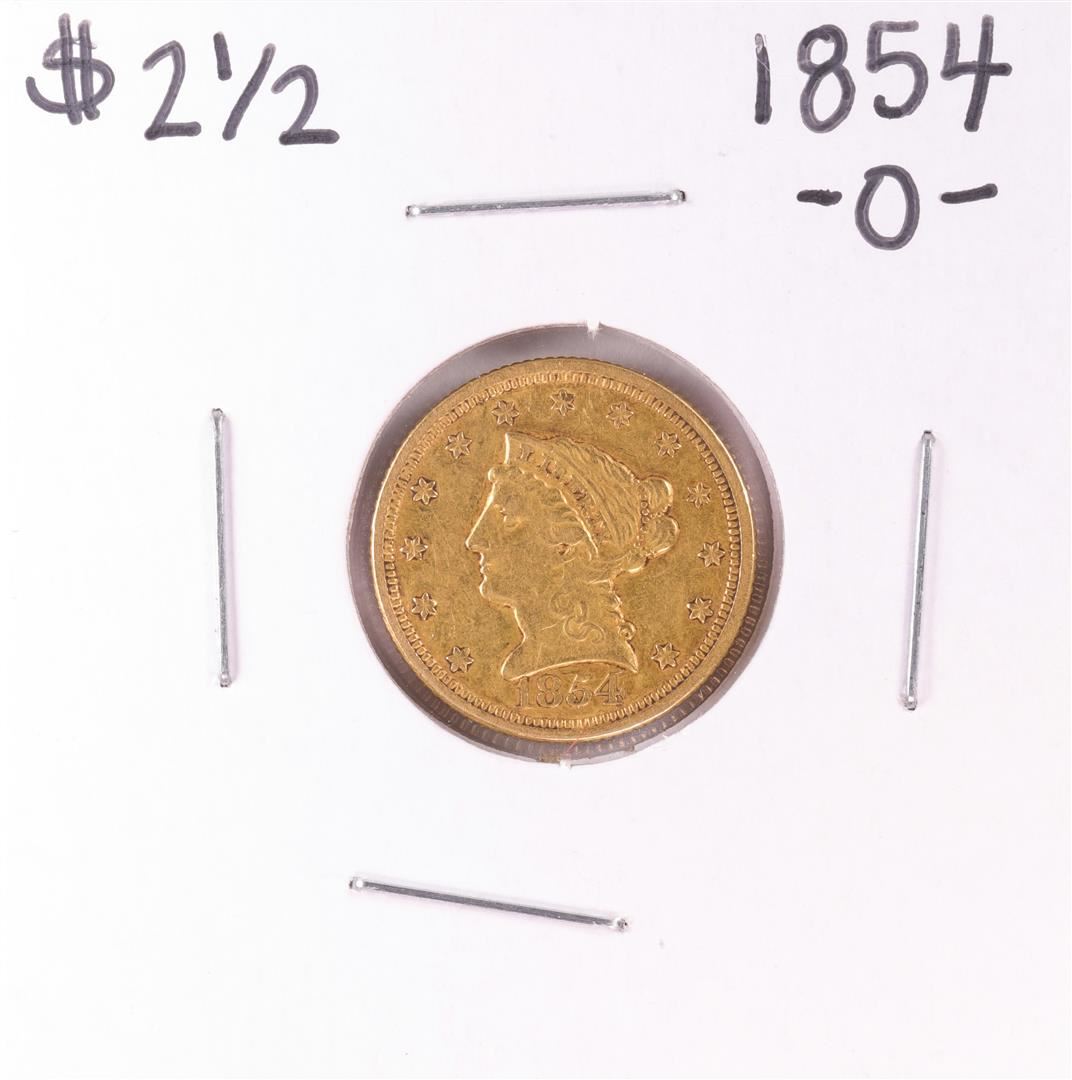One 1854-O $2 1/2 Liberty Head Quarter Eagle Gold Coin.