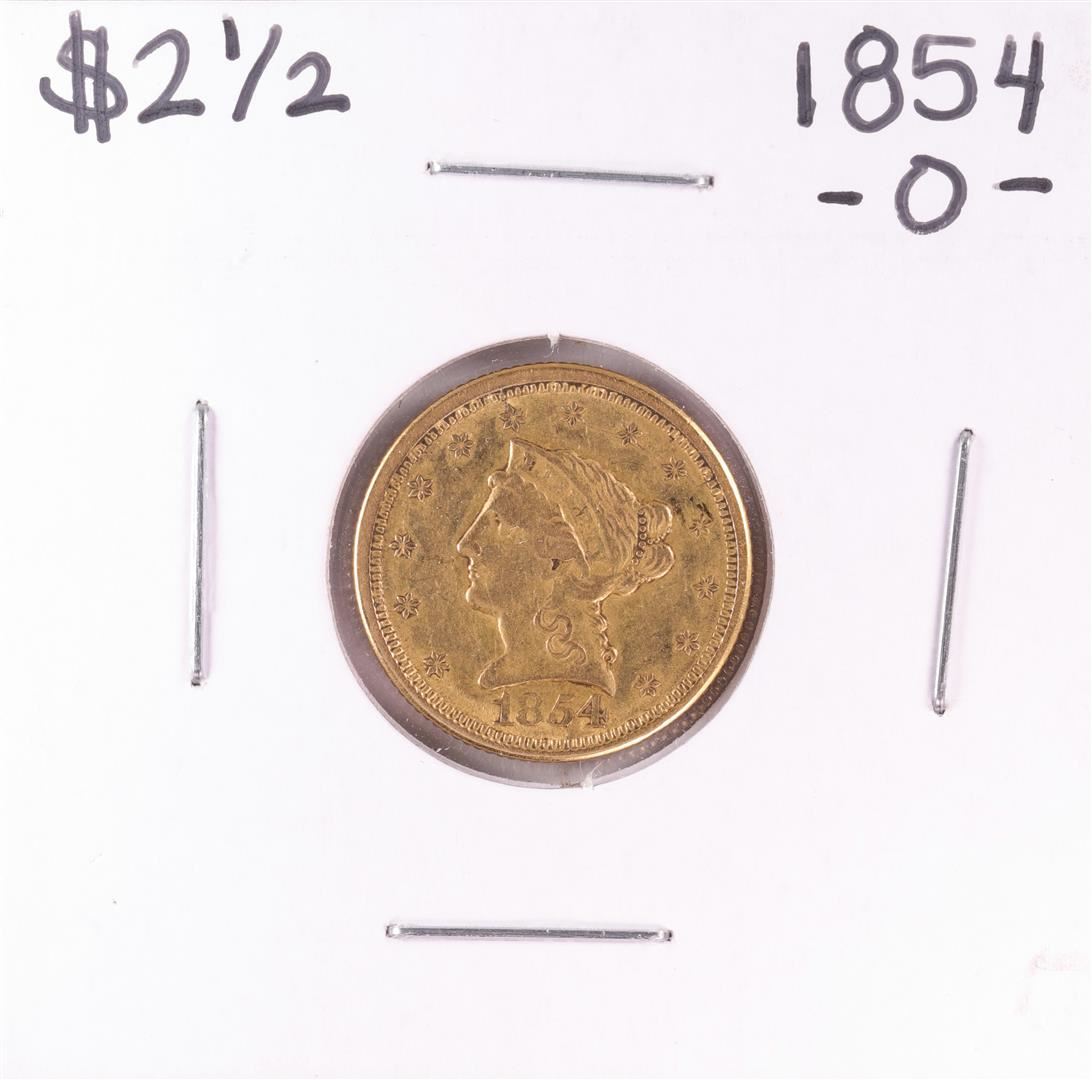 One 1854-O $2 1/2 Liberty Head Quarter Eagle Gold Coin.