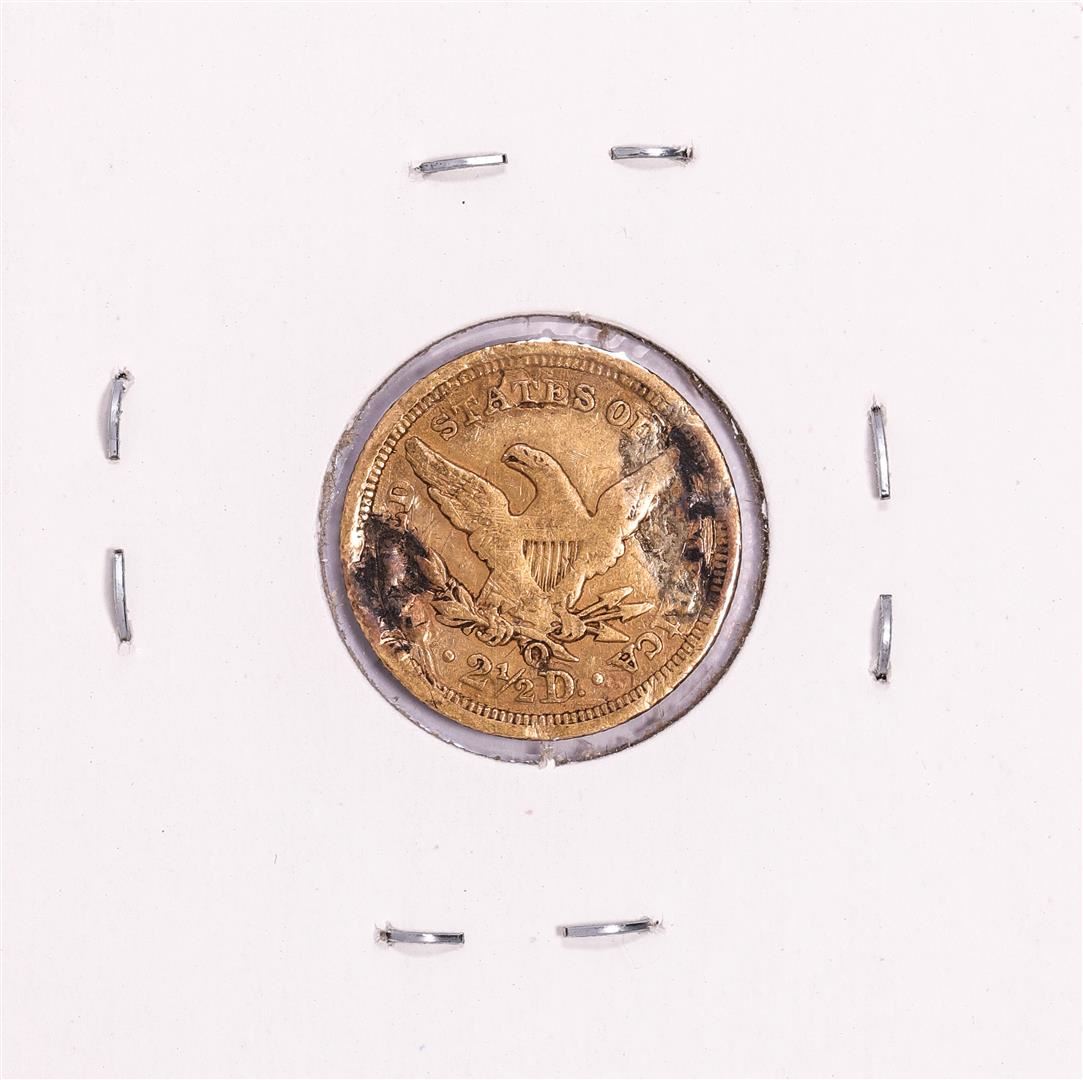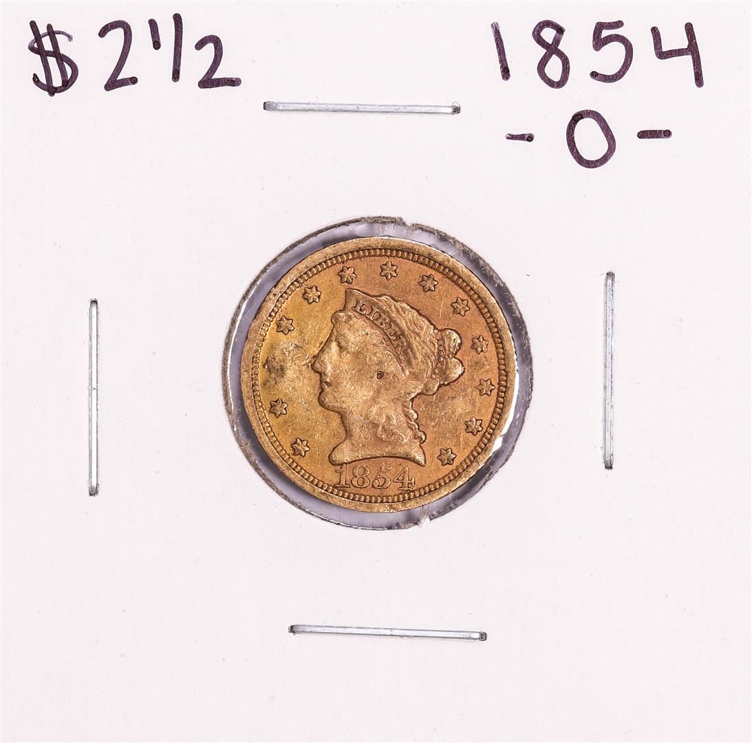 One 1854-O $2 1/2 Liberty Head Quarter Eagle Gold Coin. Please reference the included pictures and note the damage on the reverse of the coin.
