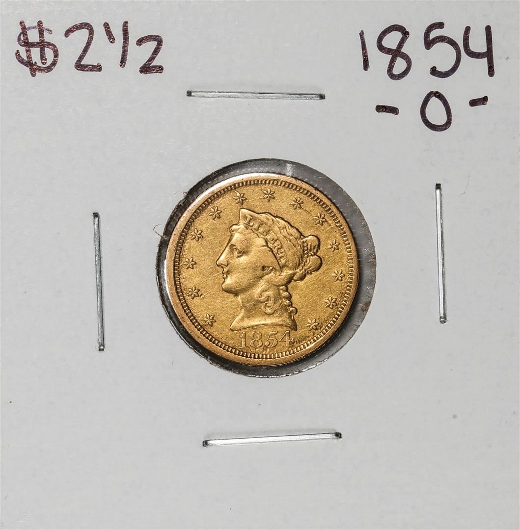 One 1854-O $2 1/2 Liberty Head Quarter Eagle Gold Coin.