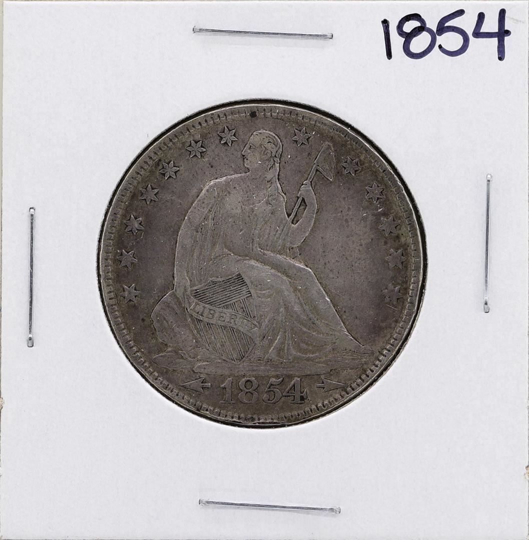 One 1854 Seated Liberty Half Dollar Coin.