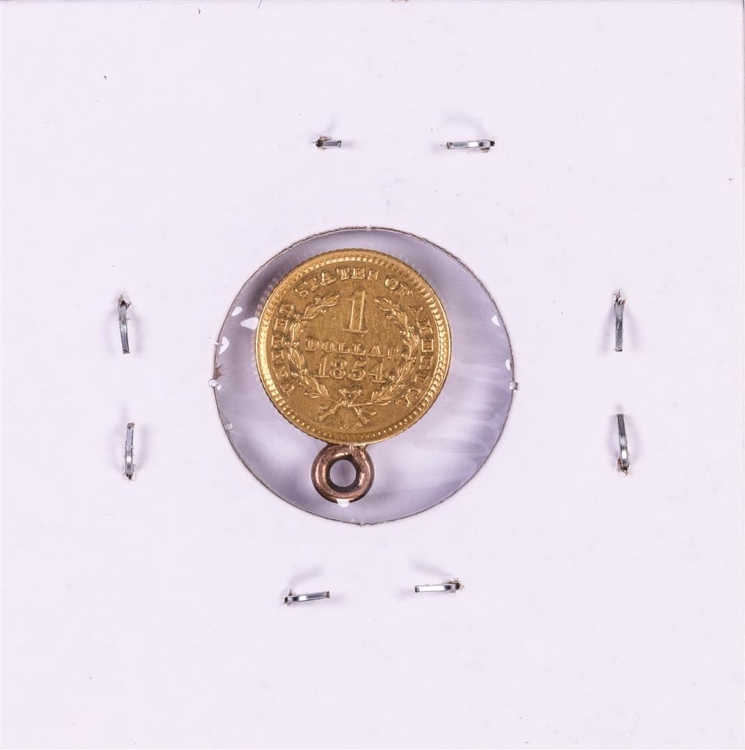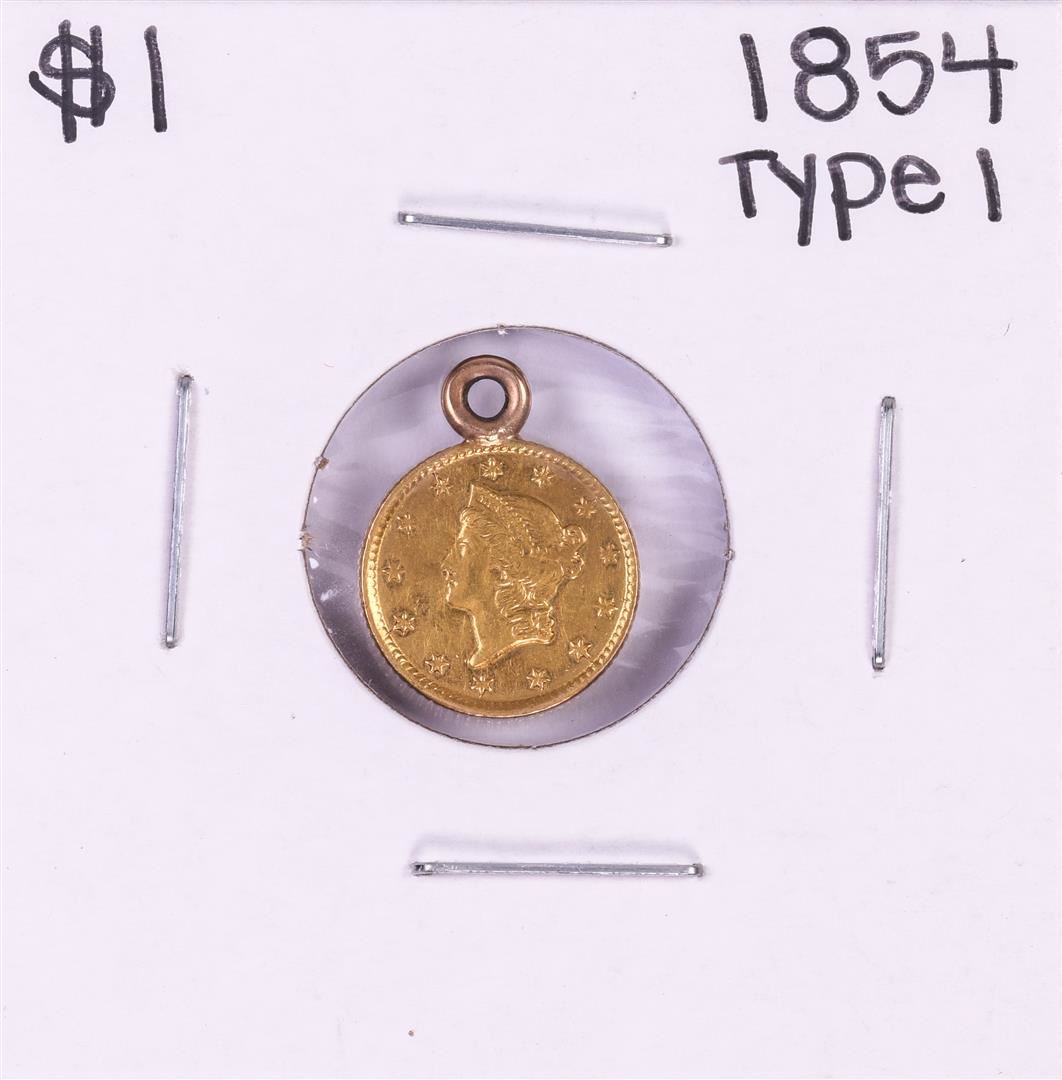One 1854 Type 1 $1 Liberty Head Gold Dollar Coin Pendent.