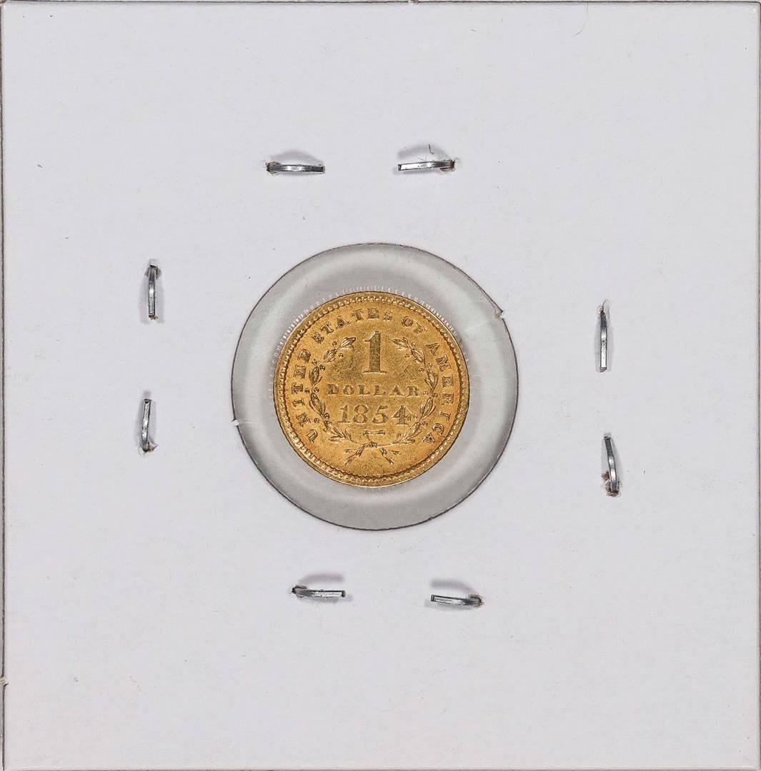 One 1854 Type 1 $1 Liberty Head Gold Dollar Coin.