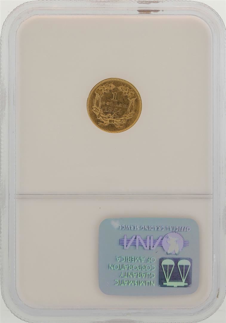 One 1854 Type 2 $1 Indian Princess Head Gold Dollar Coin NGC AU50. NGC Certified.