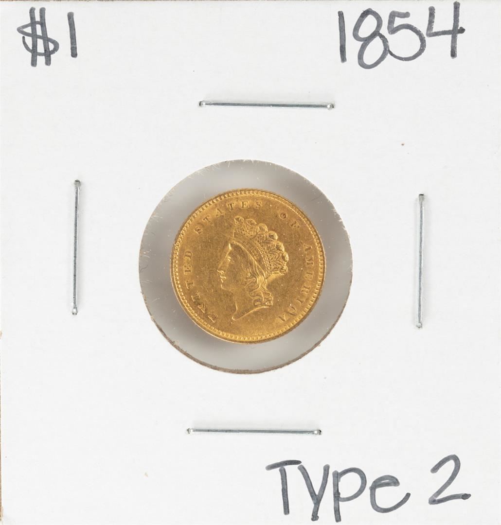 One 1854 Type 2 $1 Indian Princess Head Gold Dollar Coin.