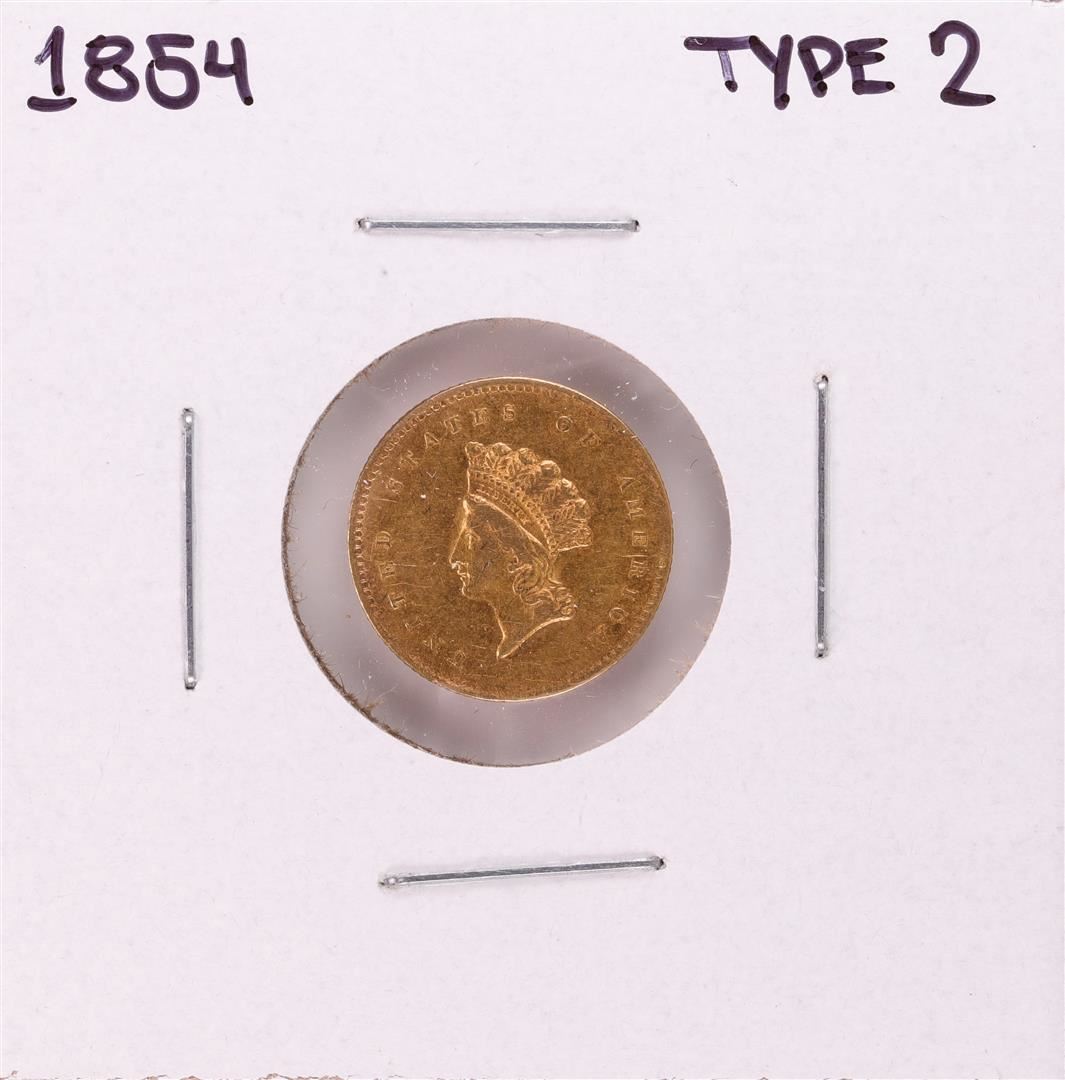 One 1854 Type 2 $1 Indian Princess Head Gold Dollar Coin.