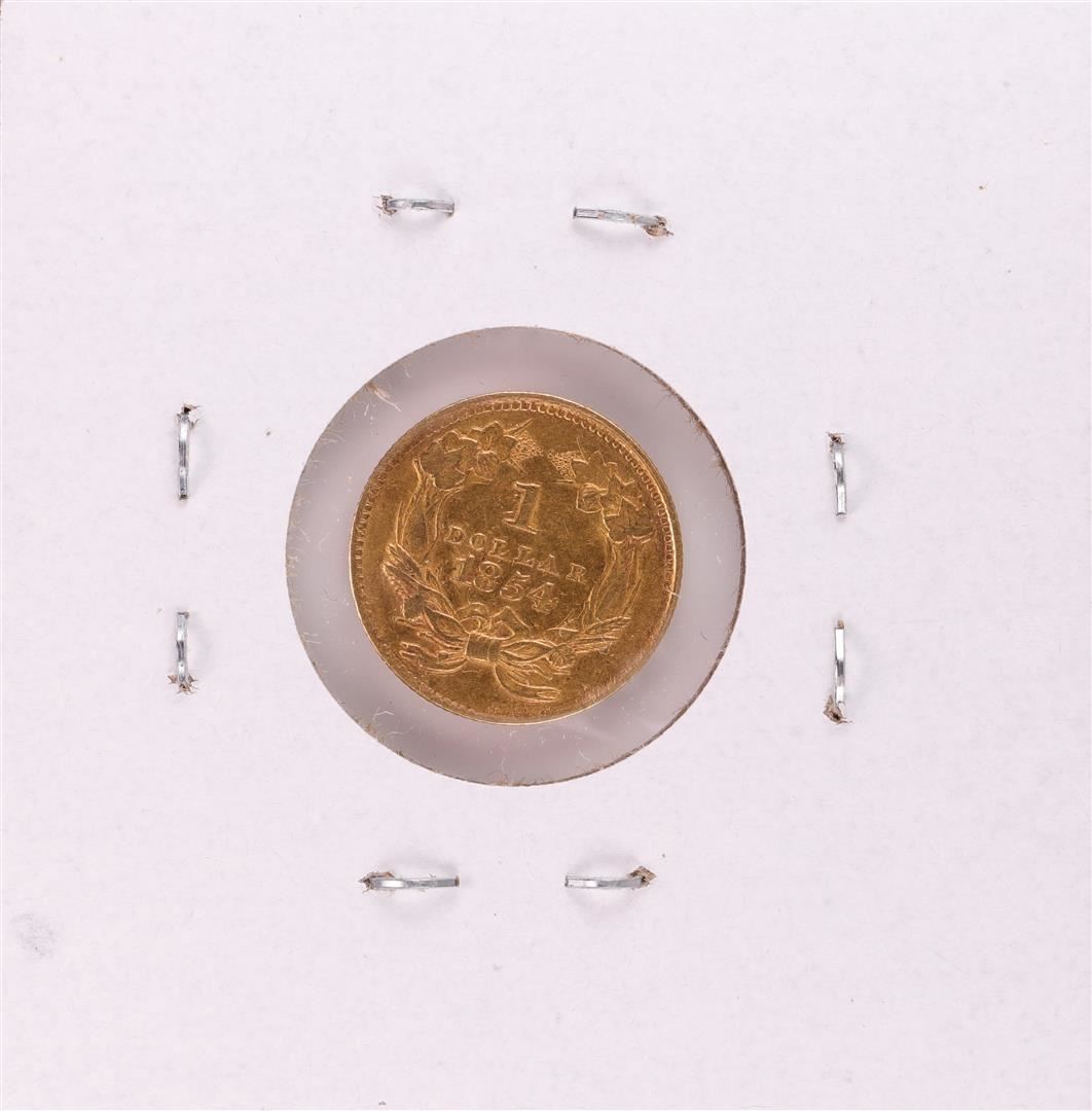 One 1854 Type 2 $1 Indian Princess Head Gold Dollar Coin.