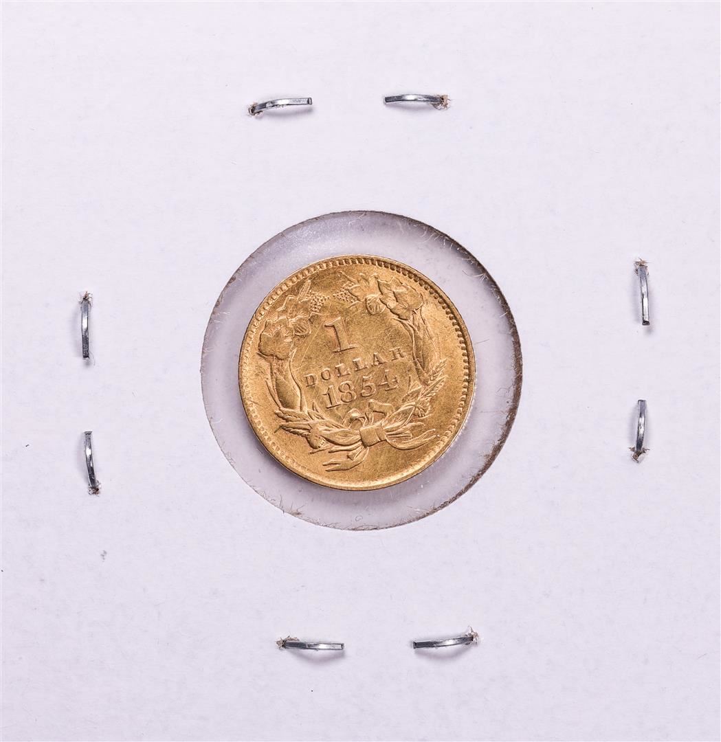 One 1854 Type 2 $1 Indian Princess Head Gold Dollar Coin.