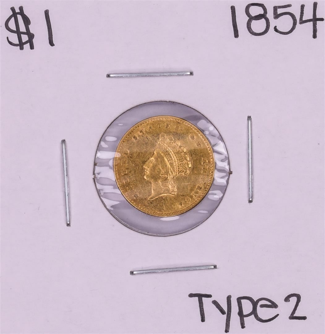 One 1854 Type 2 $1 Indian Princess Head Gold Dollar Coin.