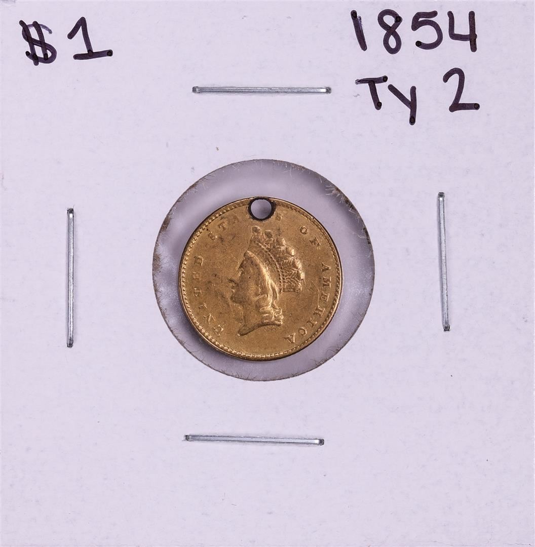 1854 Type 2 Indian Princess Head Gold Dollar Coin w/ Hole