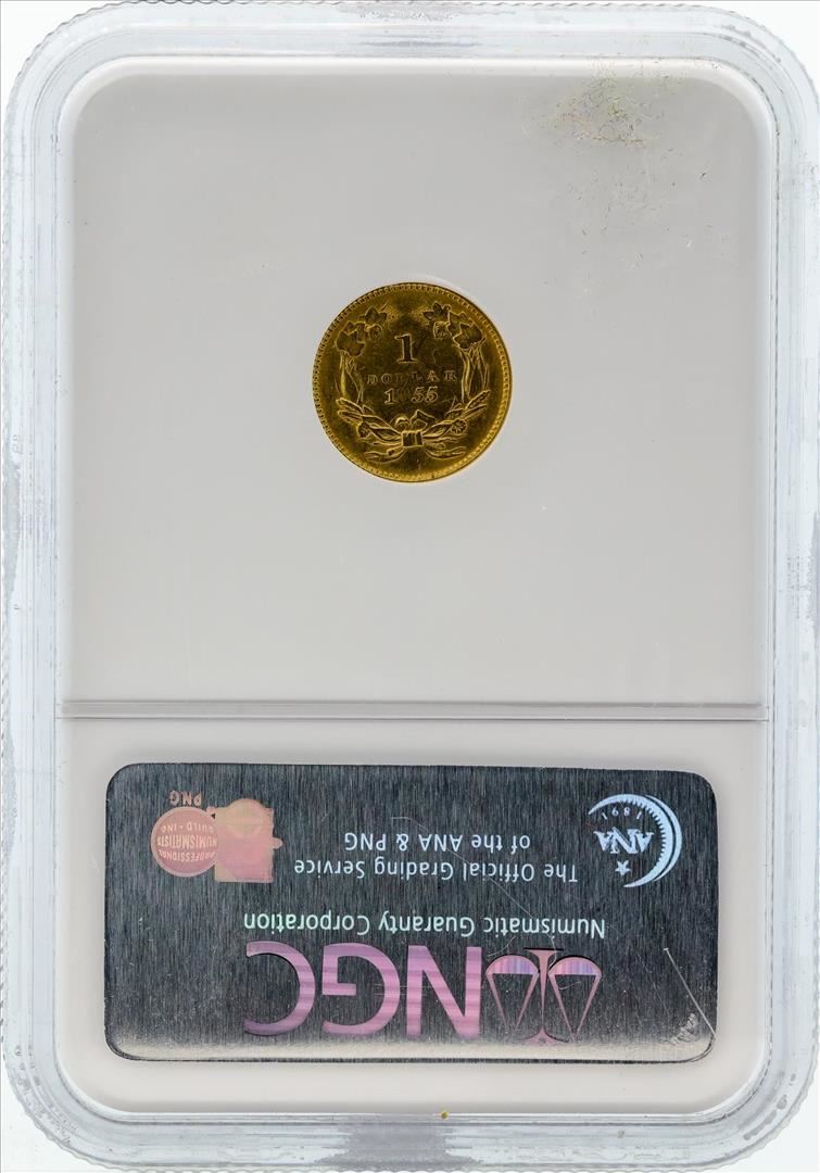 One 1855 $1 Indian Princess Head Gold Coin NGC AU55. NGC Certified.