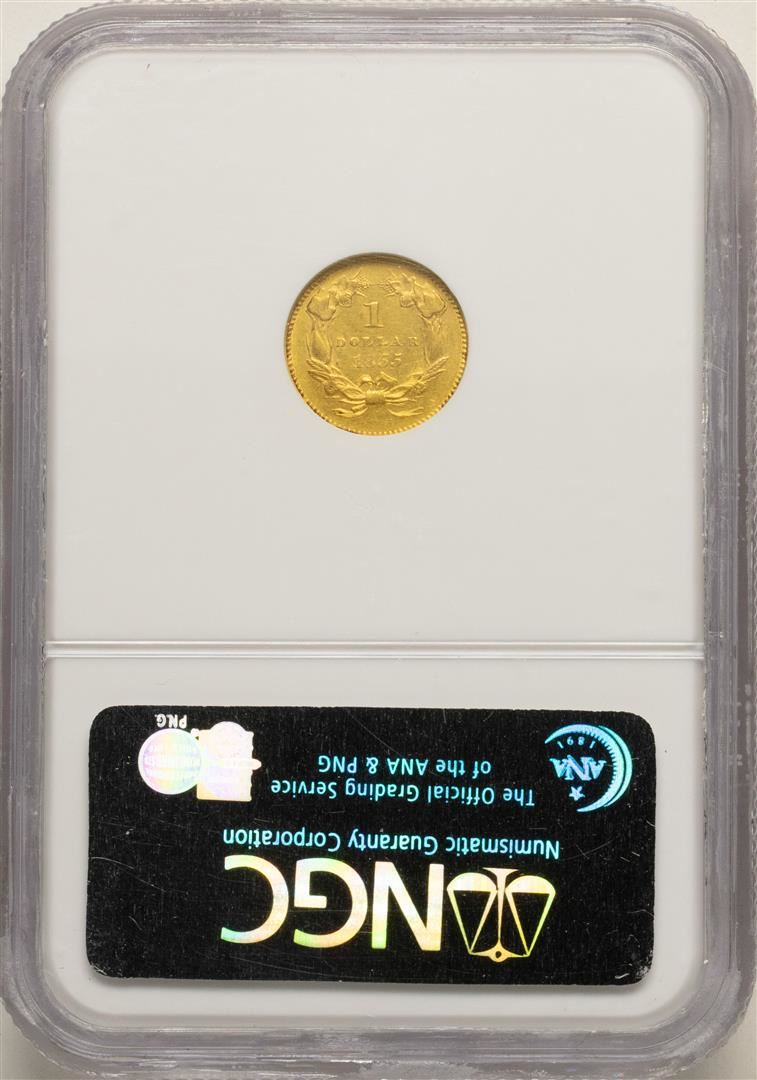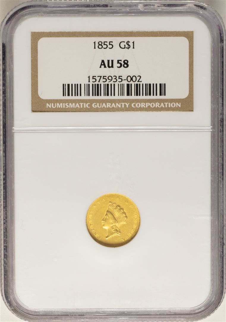 One 1855 $1 Indian Princess Head Gold Dollar Coin NGC AU58. NGC Certified.