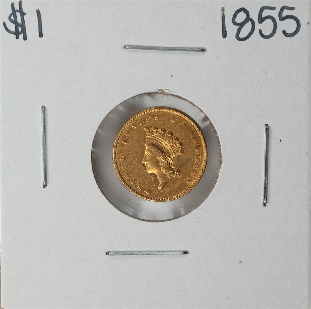 One 1855 $1 Indian Princess Head Gold Dollar Coin.