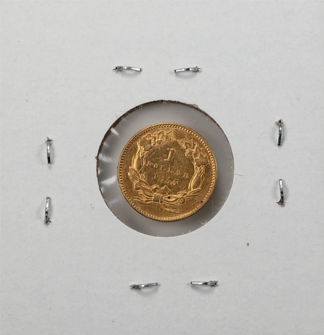 One 1855 $1 Indian Princess Head Gold Dollar Coin.