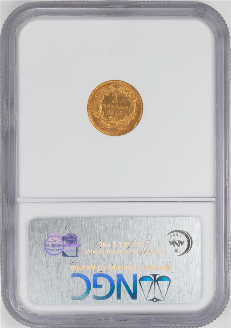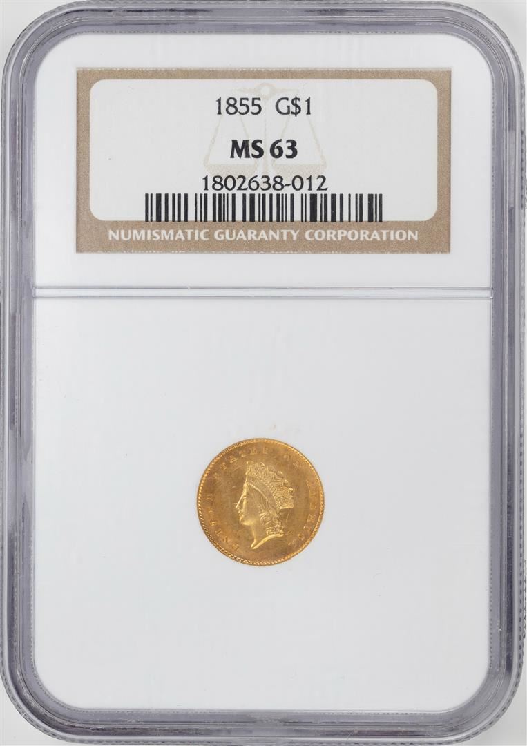 One 1855 $1 Liberty Head Gold Dollar Coin NGC MS63. NGC Certified.