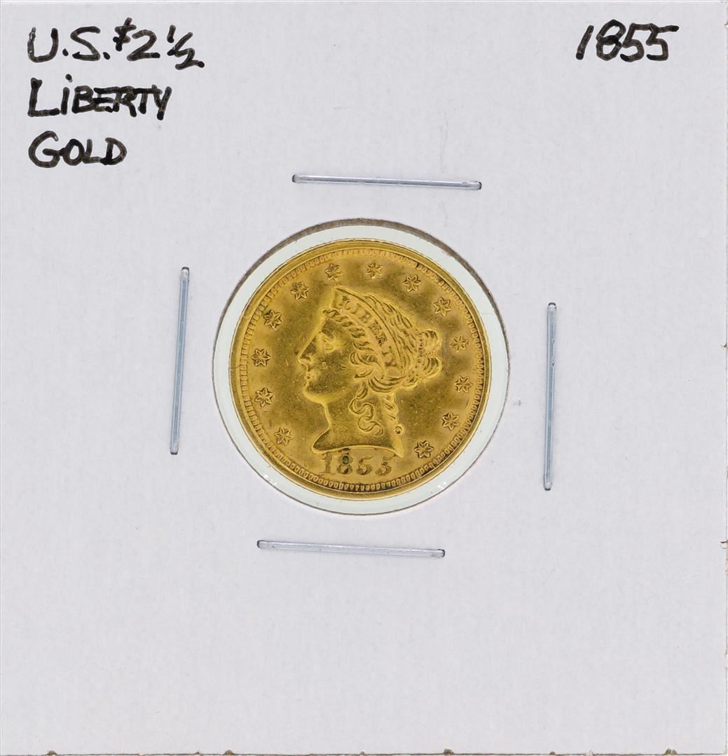 One 1855 $2 1/2 Liberty Head Quarter Eagle Gold Coin.