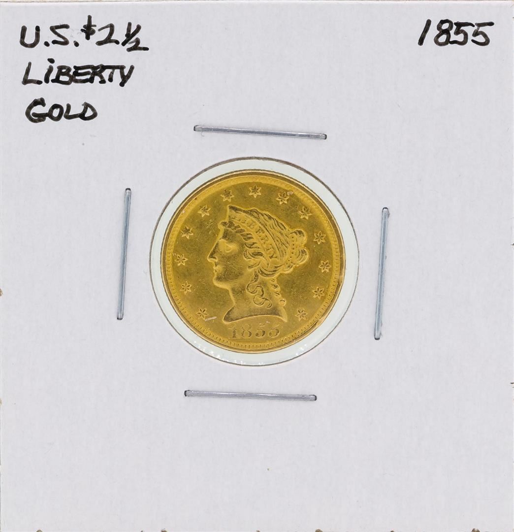 One 1855 $2 1/2 Liberty Head Quarter Eagle Gold Coin.