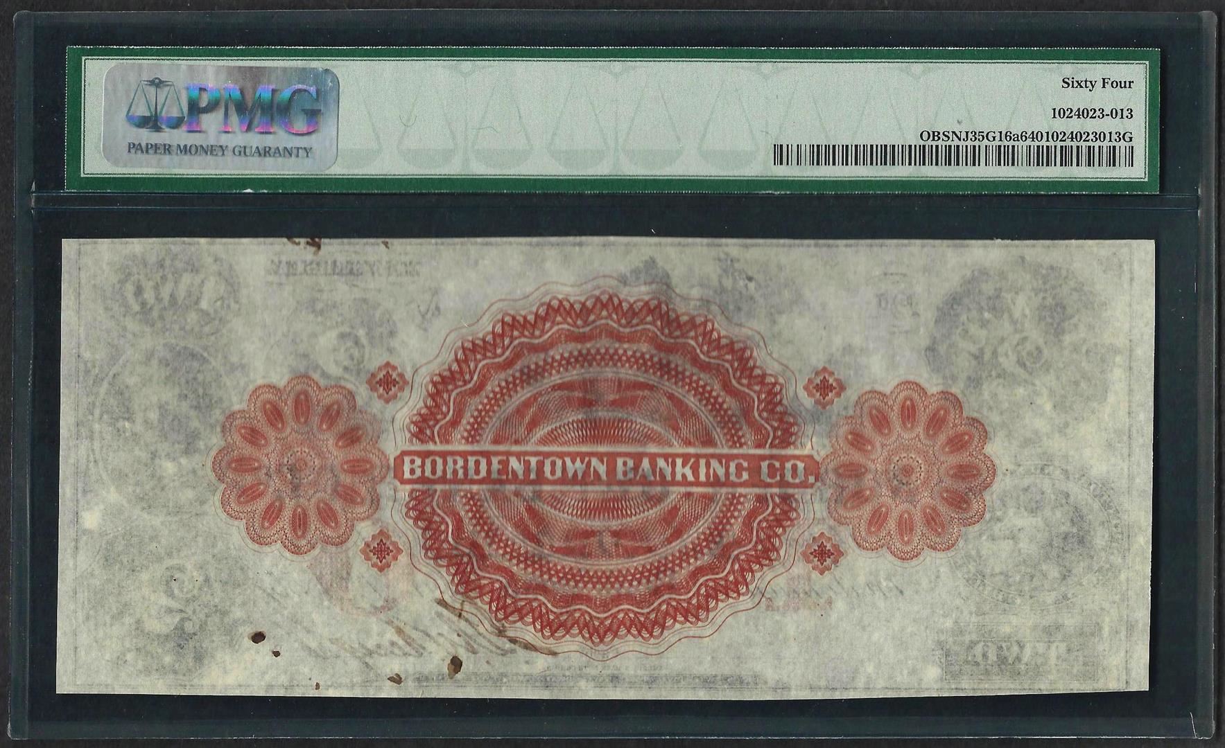 1855 $2 The Bordentown Banking Co. Obsolete Note PMG Choice Uncirculated 64