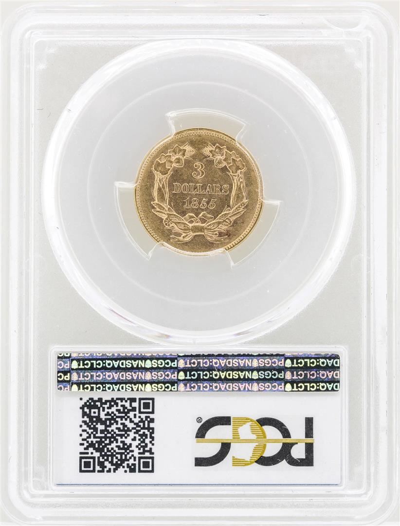 One 1855 $3 Indian Princess Head Gold Coin PCGS AU50. PCGS Graded.