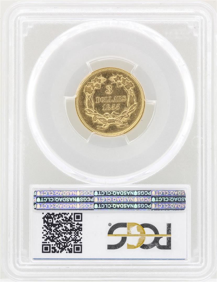 One 1855 $3 Indian Princess Head Gold Coin PCGS AU50. PCGS Graded.