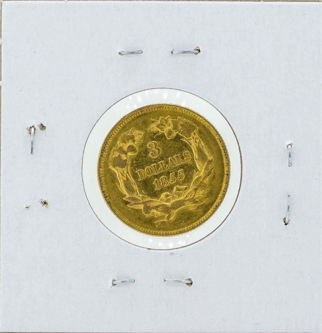 One 1855 $3 Indian Princess Head Gold Coin.