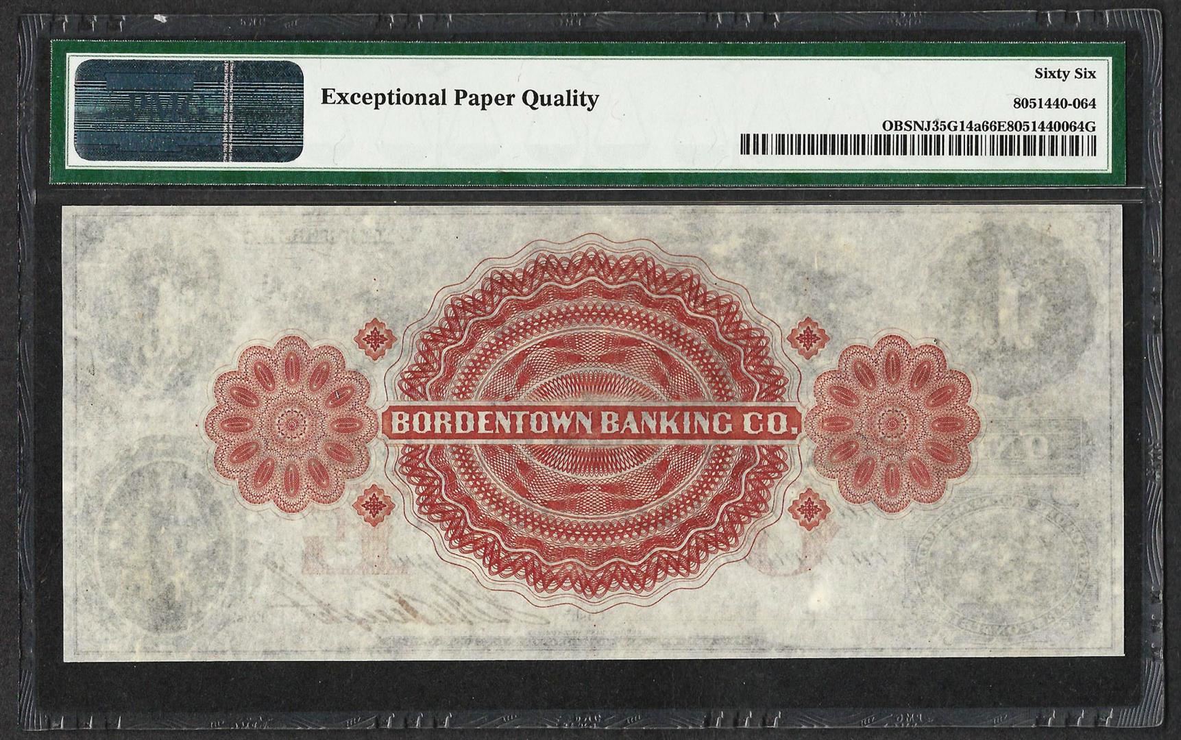 One 1855-65 $1 Bordentown Banking Co. New Jersey Obsolete Note PMG Gem Uncirculated 66EPQ. PMG Certified.
