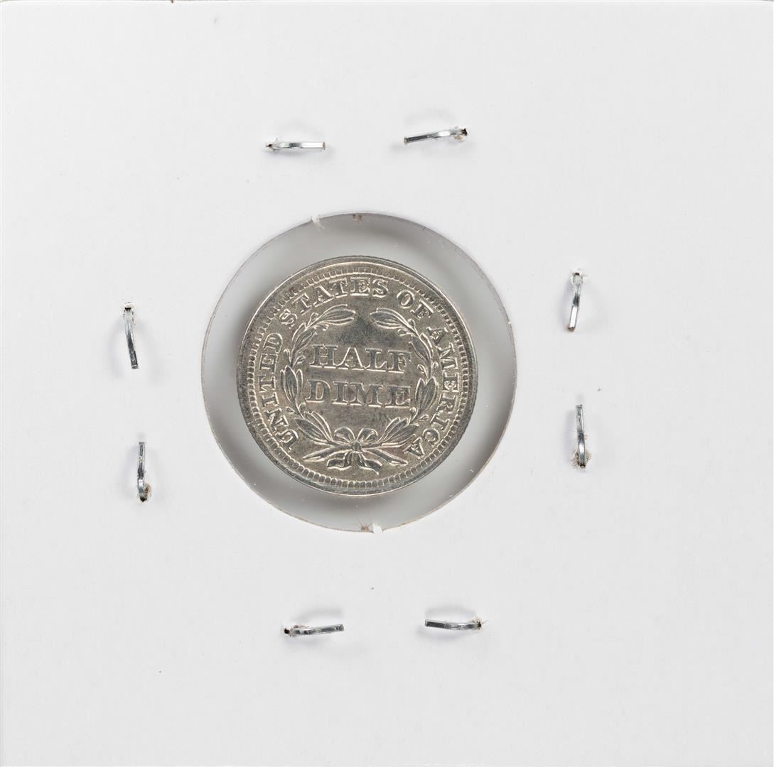 One 1855 Arrows Seated Liberty Half Dime Coin.
