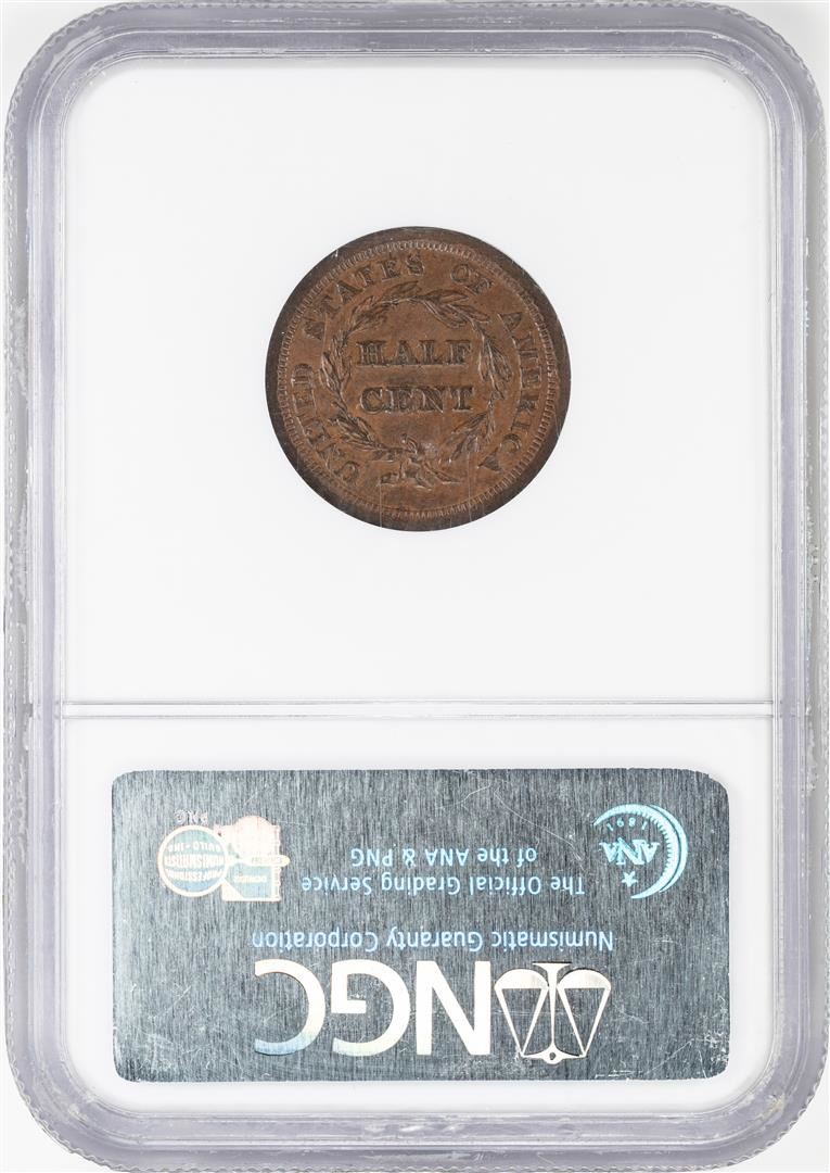 One 1855 Braided Hair Half Cent Coin NGC MS62 BN. NGC Certified.