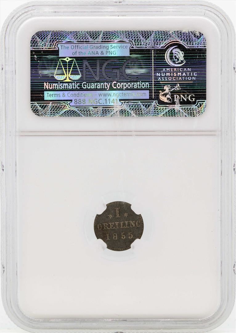 One 1855 Germany Dreilling Coin NGC MS65. NGC Certified.