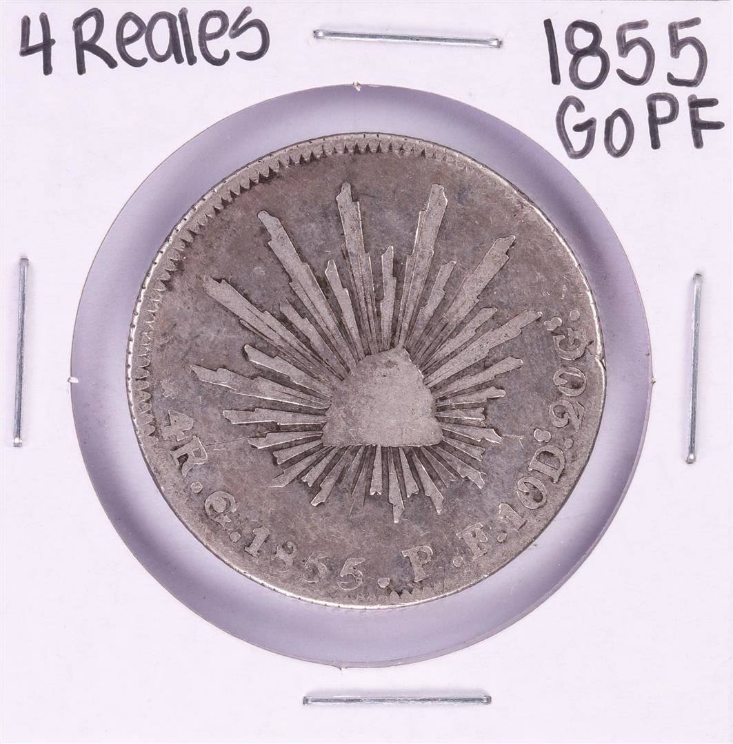 One 1855 GoPF Mexico 4 Reales Silver Coin.