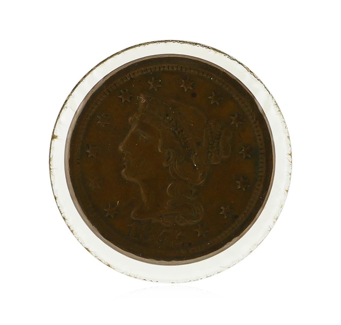 Bidders are advised that certain types of plastic may react with a coin's metal or transfer plasticizer to notes and may cause damage. Caution should be used to avoid storage in materials that are not inert.